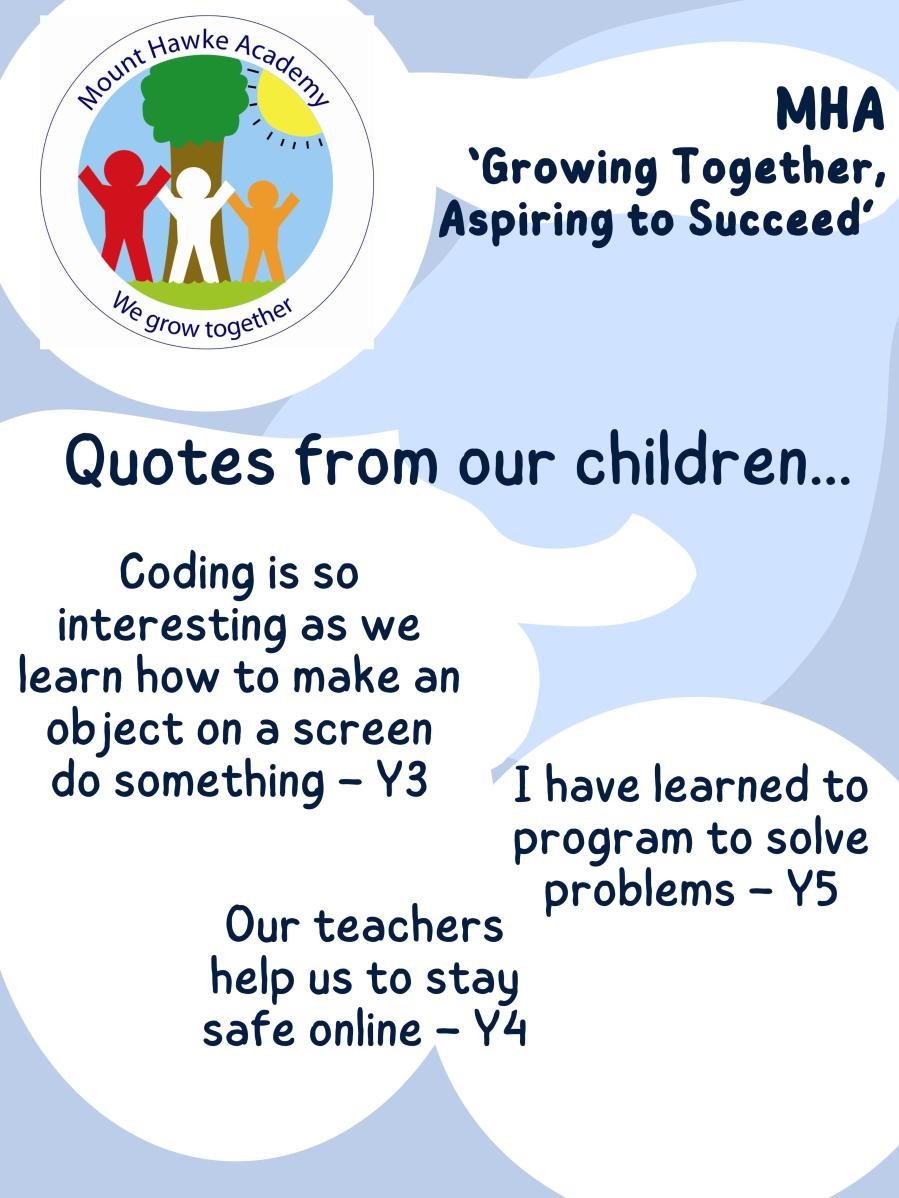 The National Curriculum's Computing content is used as a starting point for devising our curriculum -Â the objectives are broken down into manageable, sequenced chunks for children over their years with us, with further objectives added that widen the scope and reach of the subject to reflect its ever-growing breadth and importance.